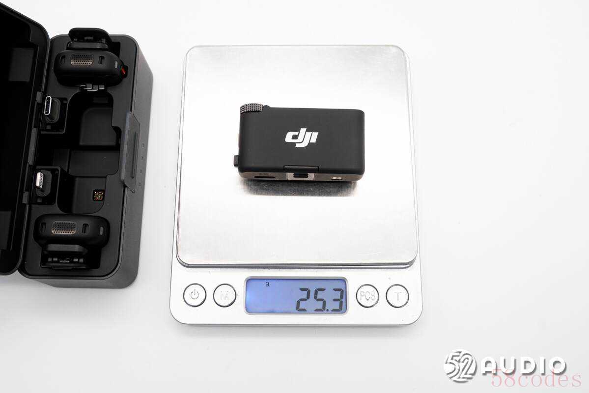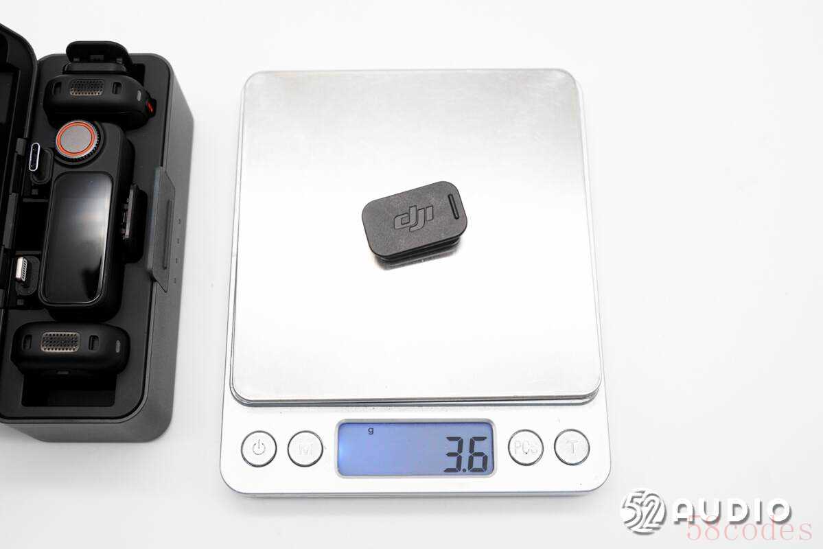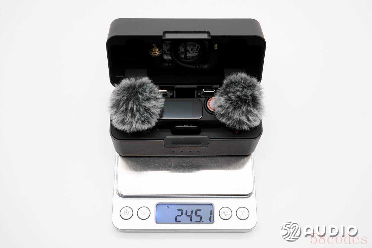 经我爱音频网实测,大疆DJI Mic 3无线麦克风搭配配件整机重量约为245.1g。