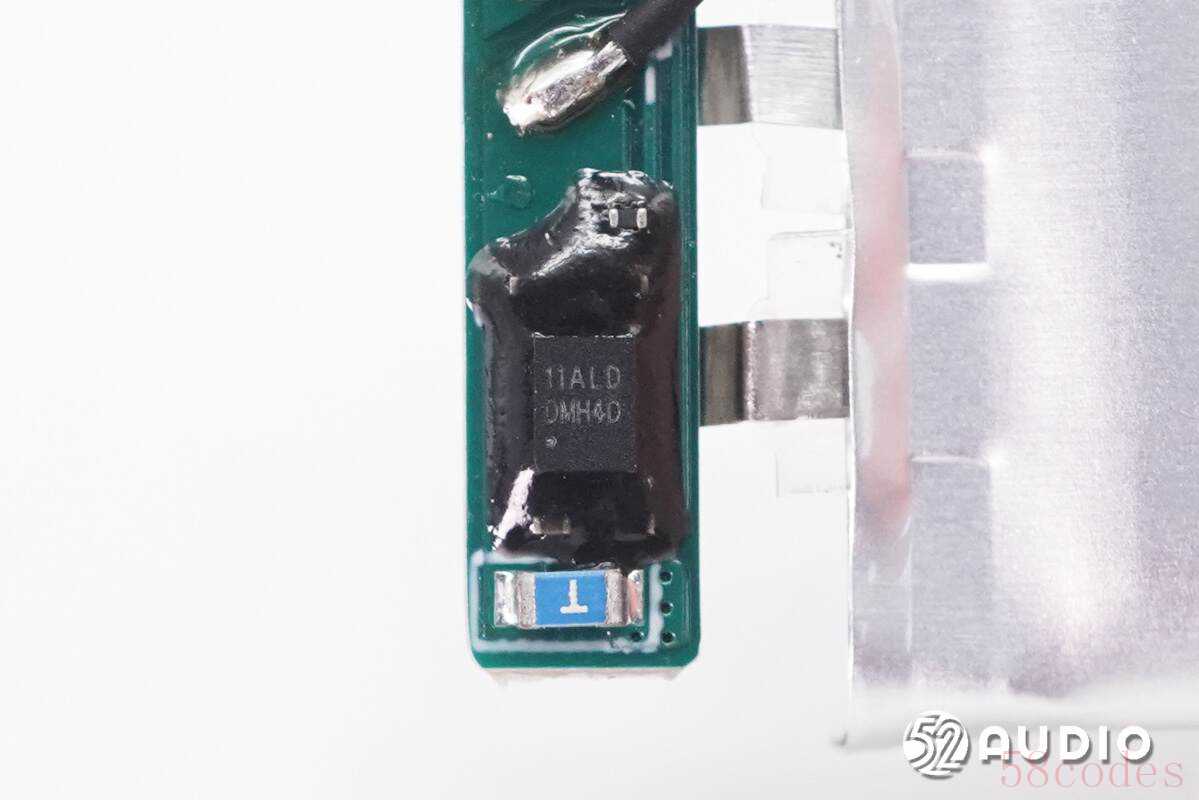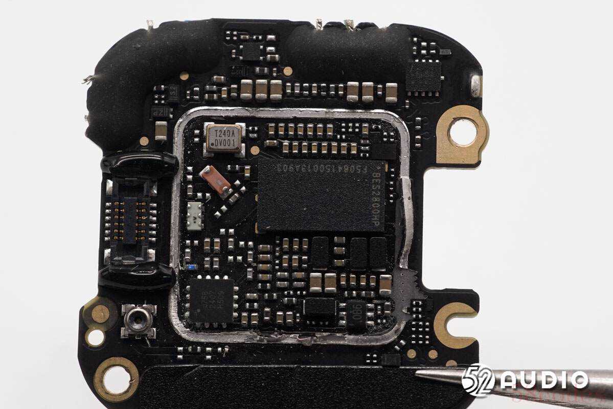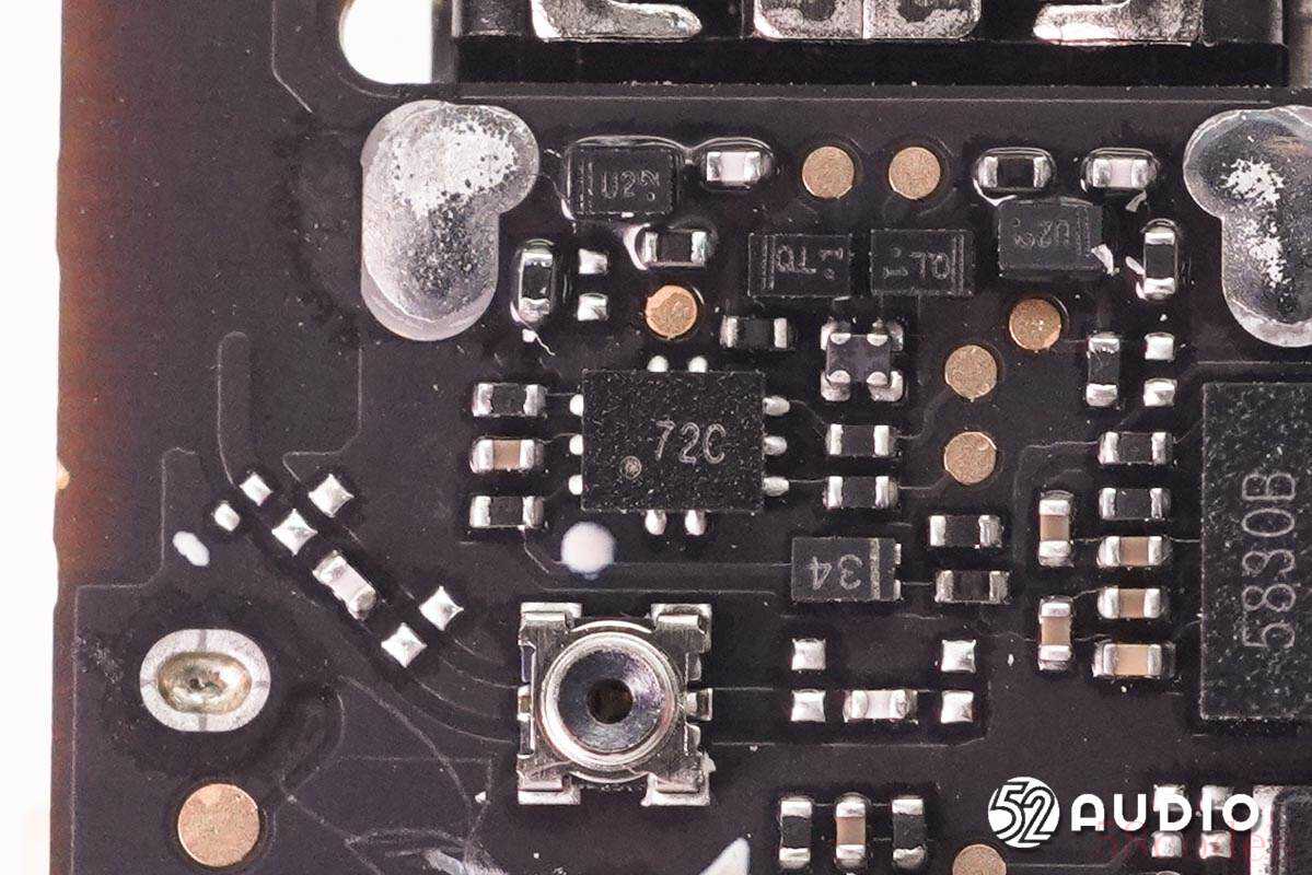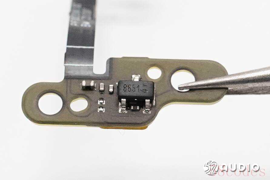 丝印8651的霍尔元件特写,用于感知充电盒开启/关闭时的磁场变化,进而实现自动开机配对或断开连接进入充电状态。