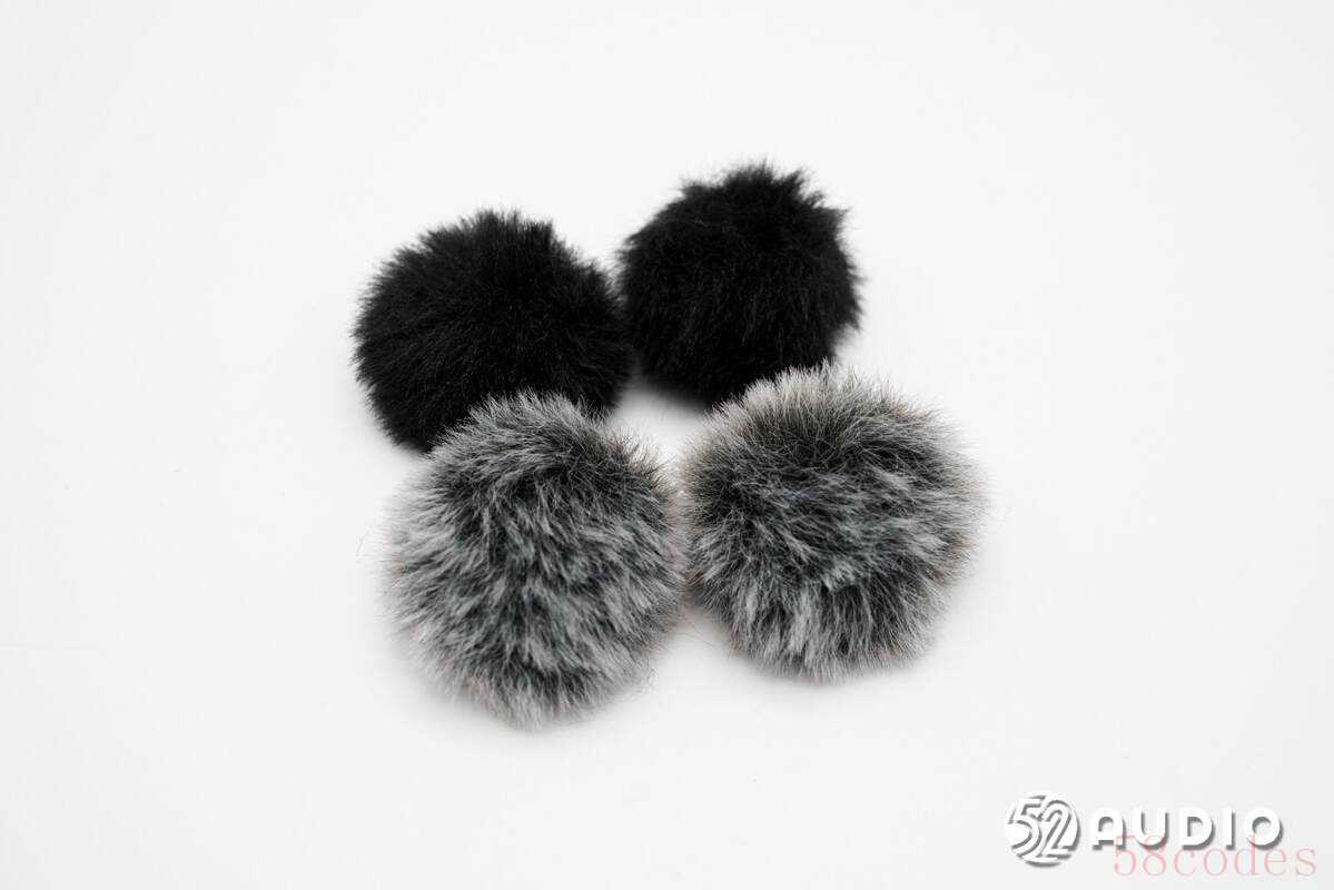 两副不同颜色的防风毛套,用于大风环境降低风噪,同时起到防喷、防尘效果。