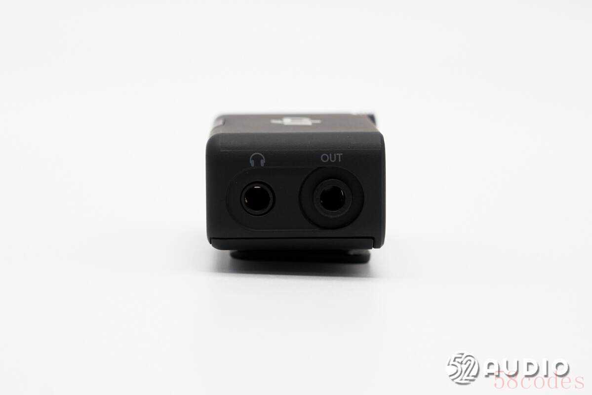 机身顶部设置收音孔,通过金属盖板防护。两侧卡扣用于固定防风毛套。