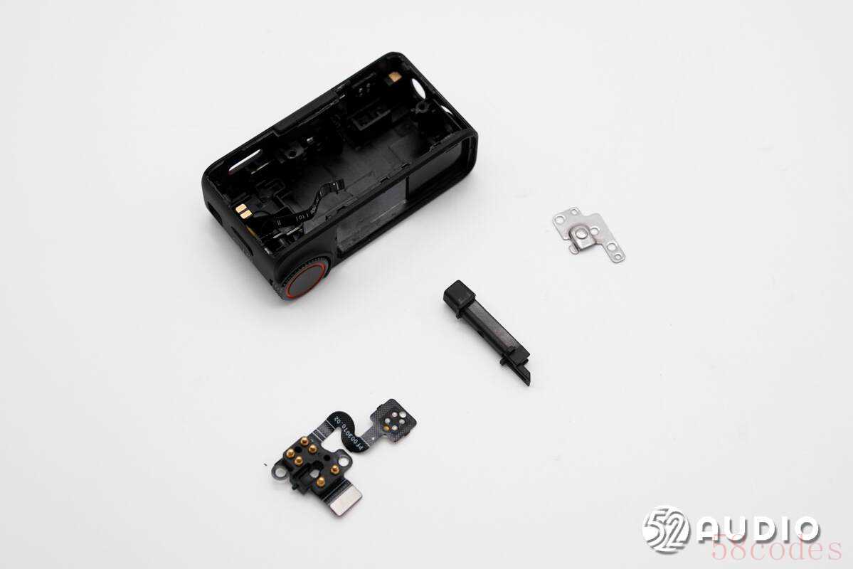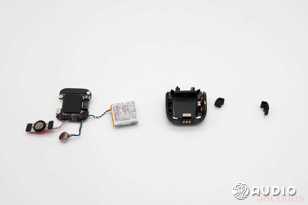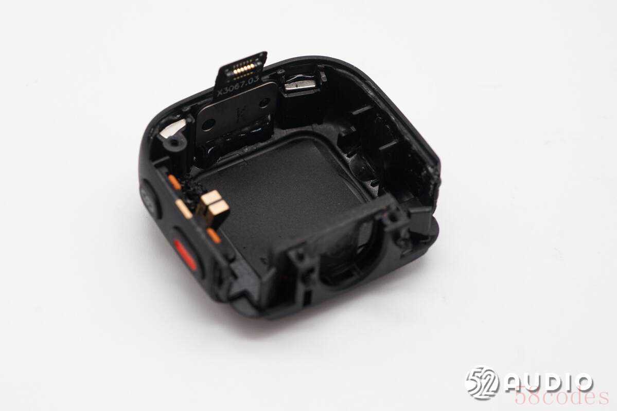 腔体底部结构一览,还设置有电池、屏幕、功能按键等元器件。