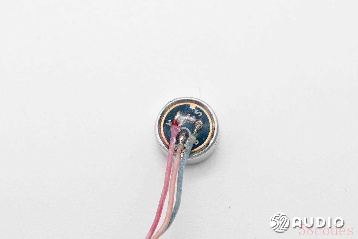 拾音咪头背面特写,采用3根收音导线设计,能够有效降低电磁干扰,收音更清晰稳定。