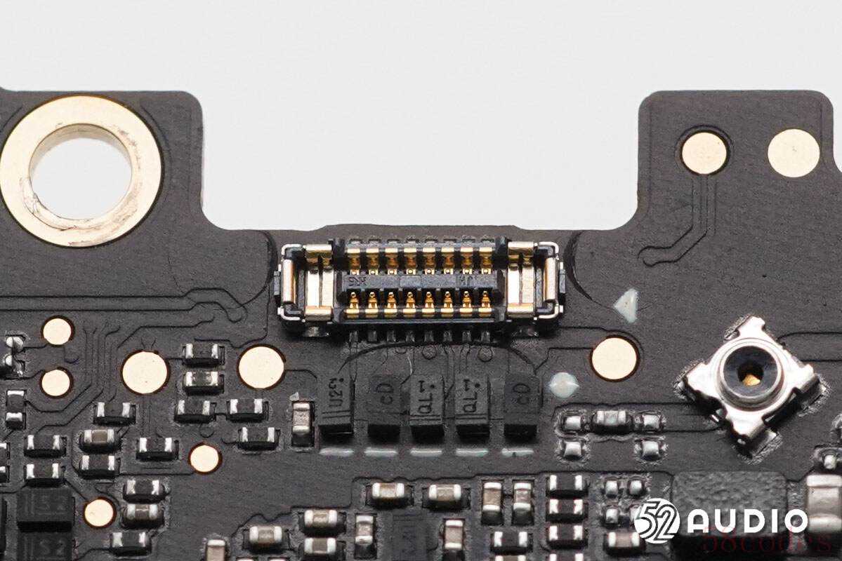 电源输入接口排线背部通过金属板强化,排线采用BTB连接器连接主板。