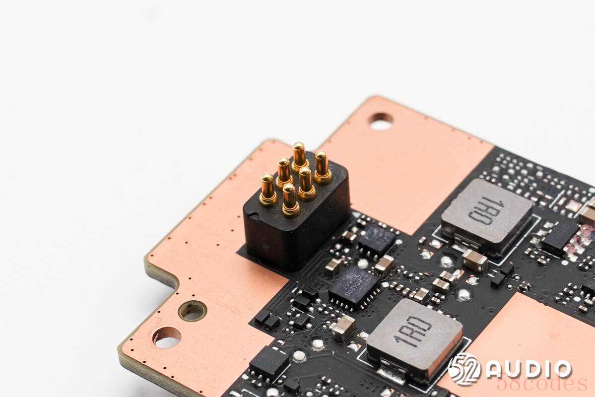连接发射器充电/通讯的Pogo Pin连接器,设置有两组,对应两个发射器。