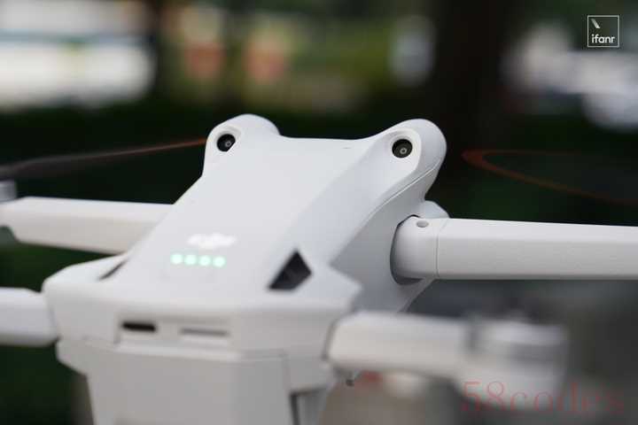 按照以往的做法,后视避障传感器应该放在无人机尾部。但在 Mini 3 Pro 的新构型下,这样做会被机臂或桨叶挡住。