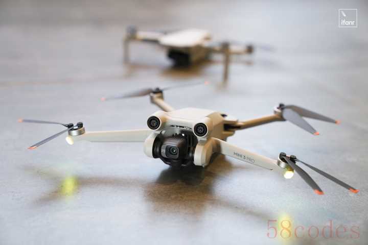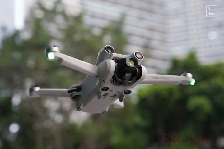 Mini 3 Pro 的新构型,设计了一个悬停朝后的机身倾角,所以在前飞时,机身的迎风面更小,降低了风阻,节约了能耗。