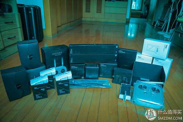 来张标配及大礼包的全家福,双控,四块电池,全部装得下,其实这个包里能装得下六块电池,但是资金有限,而且初期个人觉得没有必要配那么多,提前堪好景,一块做侦查,两块飞,一块备用,应该足够了。装满拎在手上很沉,不适宜长距离提着走。飞行器开箱是运输模式,一定要用遥控器将其退出运输模式,才能安装云台相机,用完要依次拆好,再进入运输模式装箱,个人觉得太不方便了,私家车除了后备箱腾空状态下能装的下,但是不能保证没有颠簸,哪碰坏了够心疼好几天的。整机太宽,后座也没法放,期待有直接能放的箱子,一装就走,省去拆箱装的痛苦。