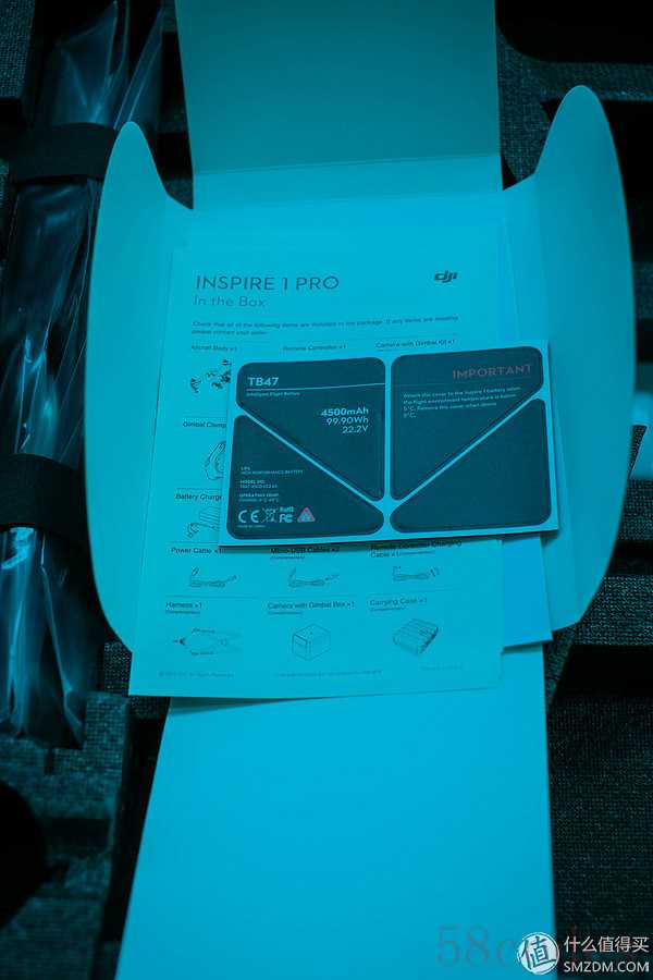 产品手册,连着几页都是英文,总算在下面翻到了中文的说明书,还有使用手册,一张电池保温贴,应该是贴在TB48,方便上飞机的,飞机规定携带的电池不能超过100wh,TB47是99.90wh,TB48是129.96wh,为了大家的安全千万不要想着蒙混过关,这(gan)样(de)不(piao)好(liang)。