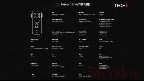 2. 泰科易 TECHETECHE 360AnywhereTECHE 360Anywhere 虽然只有4目鱼眼镜头,其素质也不输其他两款相机。其优势在于散热和收音:1)散热:内置铜管制冷液体被动散热系统2)收音:全密封无风扇,0分贝,无噪音