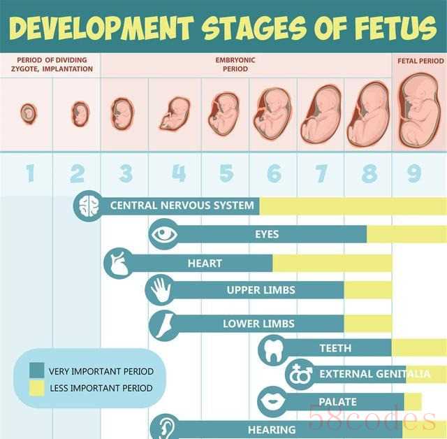 怀孕第2-3个月:大脑开始分化,并且进入第一个发育高峰期;