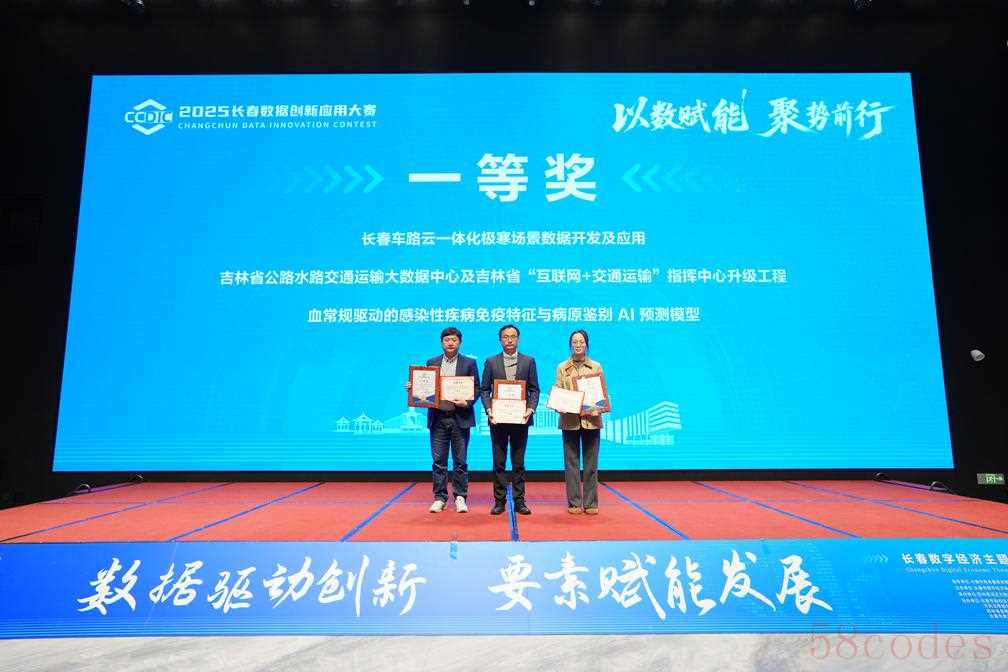 活动中,首先为获得“2025长春数据创新应用大赛”一、二、三等奖的28家单位颁发证书。