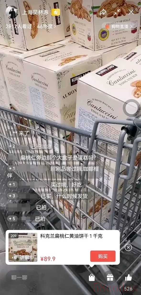画面中,主播“上海吴林春”正在开市客(Costco)上海店现场采购。没错,是那个不花299元买会员卡就不能进去逛逛的开市客。