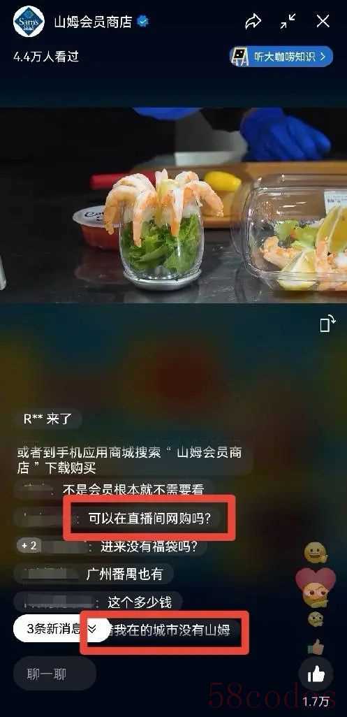 因“只为会员服务”,山姆阻止非会员进入超市购物的行为曾引起广泛关注。在最近的山姆官方直播中,观众想在直播间下单却被告知需要凭会员卡,前往门店或下载山姆App选购。
