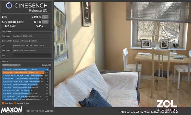 Cinebench R15实测多核1082cb、单核187cb;Cinebench R20实测多核2350cb、单核431cb,与其它产品上的测试成绩相比,多核差异在100分以内,单核差异在10分以内,可以说是非常稳定的性能输出。