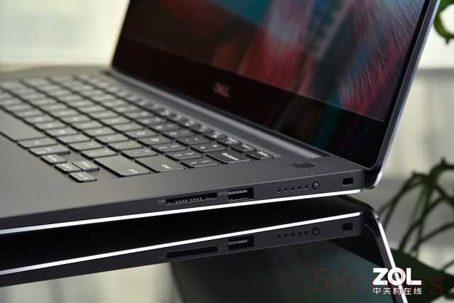 就外观来看,XPS 15系列近年来没有什么大的变化,银色金属A面与D面,碳纤维C面以及微边框B面已经成为这款产品的标志性元素。整个产品给人的感觉依旧是用料扎实,拿在手上就有一种非常可靠和放心的感觉。