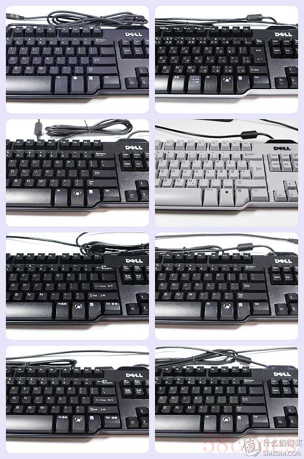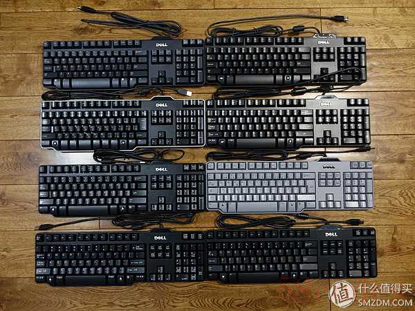 这里UP先说下关于RT7D50和L100是什么鬼,其实当年DELL一共找了三家工厂生产这款键盘,分别是NMB的RT7D50、旭丽的SK-8115、达方的L100,其中SK-8115出货量最大,另外二家只能沦为绿叶作其陪衬了。NMB的RT7D50是最早开始生产这款键盘的代工厂,其版本号目前UP主只都看到过A00,RT7D50产量很少在市场上非常少见所以导致很多人不认识这款键盘,其颜色则有蓝黑色与灰色二种。接下来就是旭丽的SK-8115,SK-8115共有5个REV号分别是A00、A01、A02、A03、A04,其中前三个版本据说手感最好,其中A1有银边的精英版,A2则有灰色版本,但其他版本有没有灰色版本就无从考证了。最后一家代工厂则是L100,这个型号代工厂外面一直流传说是罗技代工,UP主也不知道罗技代工这个说法从哪里开始流传开的,但是实际是明基旗下的达方电子代工,也就是生产海湾海贝的那家厂子,键盘版本同样共有5个REV号分别是A00、A01、A02、A03、A04,手感因为偏硬所以导致受很多人诟病,甚至不少不明真相的群众看到L100以为自己买到了山寨货。UP主这期规模比较大一共有八把键盘分别是,RT7D50 A00(蓝黑色)、SK-8115 A01(精英日文版)、SK-8115 A02(灰色)、SK-8115 A02、SK-8115 A03、SK-8115 A04、L100 A03、SK-8115 A03(山寨精仿)。