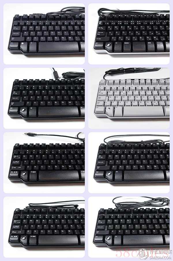 在8把键盘中SK-8115 A02灰色版本的最下排键盘比较特殊,可以看到一条明显的折线。
