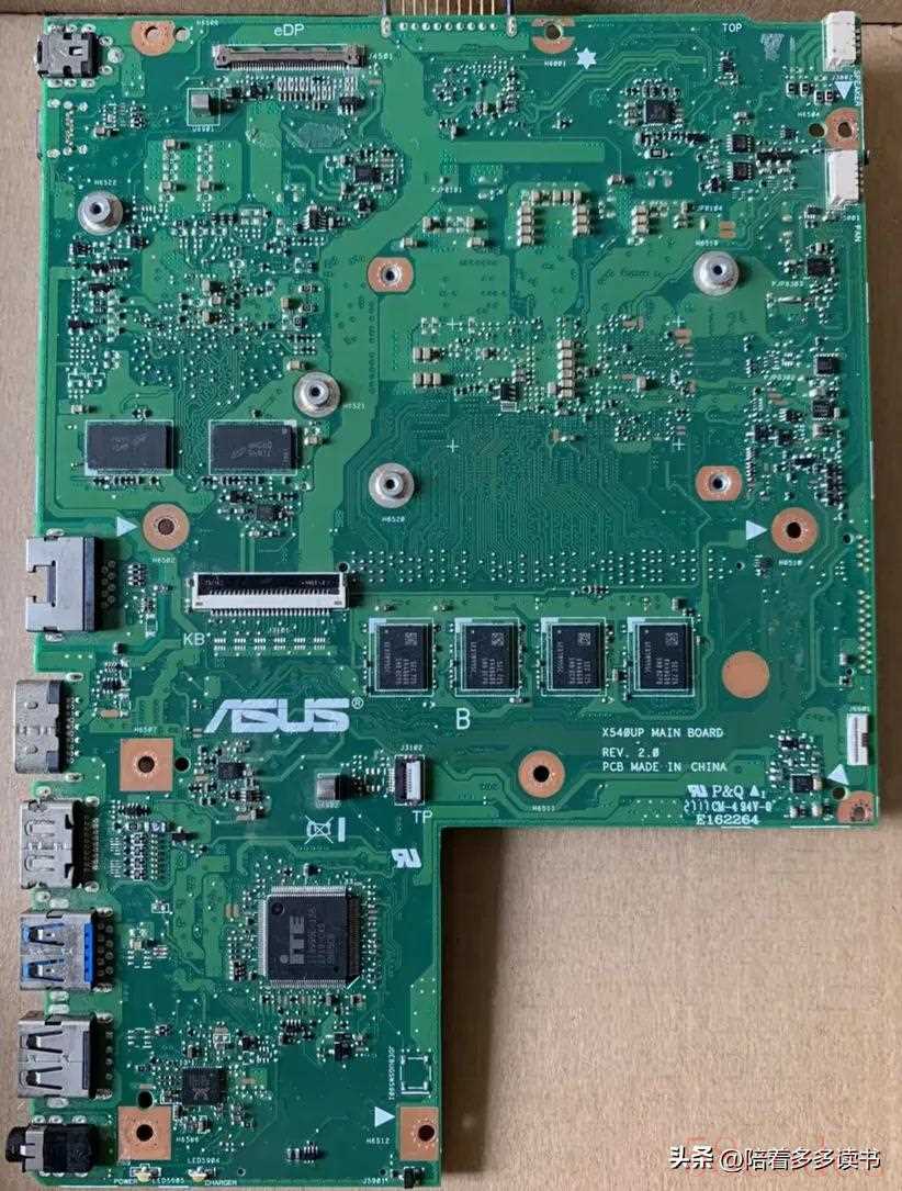 ASUS笔记本是自己加工生产的,华硕笔记本的主板都是绿色的,所以华项笔记本的主板上都有自己的标识。