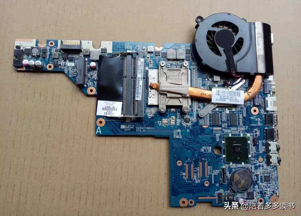 HP笔记本的主板上面一般没有HP LOGO,但是主板和各配件上面都会有条码和物料号,通常HP笔记本的主板是蓝色的。