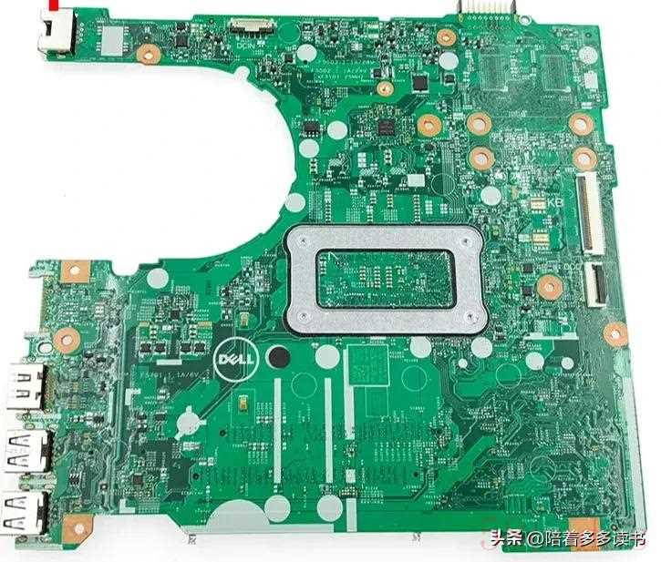 DELL笔记本一般也是代工厂生产的,DELL笔记本主板上面一般有DELL LOGO,主板上还会有型号和物料编号,DELL笔记本主板有绿色,也有蓝色。