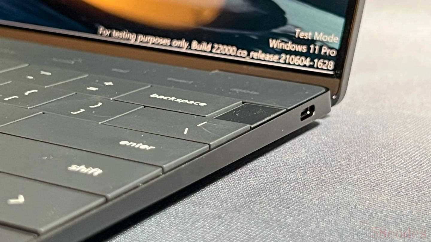 XPS 13 Plus的扬声器一共有四个,键盘下面有两个向上发射的扬声器,底座上有两个。I/O端口和外设包括2个Thunderbolt 4 USB-C端口,720p的WindowsHello网络摄像头和Windows Hello指纹识别器也是标准配置,今年的型号没有了耳机插孔也不包含MicroSD卡扩展,但戴尔在包装盒中标配了一个USB-C到USB-A 3.0适配器。
