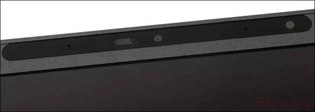 ▲Latitude 7300屏幕顶部有大有名堂:除了带物理挡板的主摄像头和阵列式麦克风,还有两个红外辅助摄像头(用于人脸识别登录)和环境光传感器(根据环境光自动调节屏幕亮度)——可说是把易用性发挥到了极致。