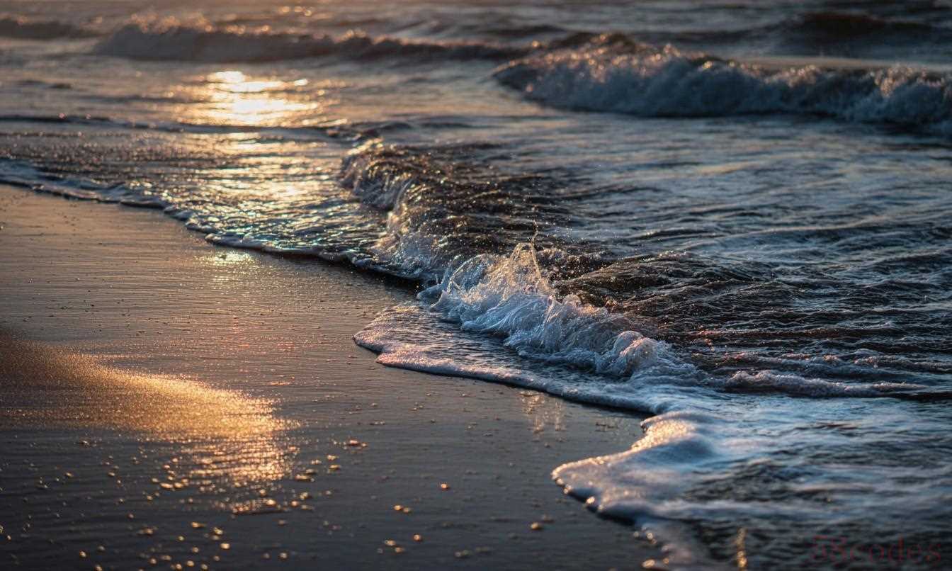"为何迷人?" “黄金时刻”的光线能极大地柔化海浪拍打岩石或沙滩的硬朗边缘,为画面增添温暖、宁静、梦幻般的氛围。它还能产生长长的、富有动感的影子,增加画面的深度和立体感。