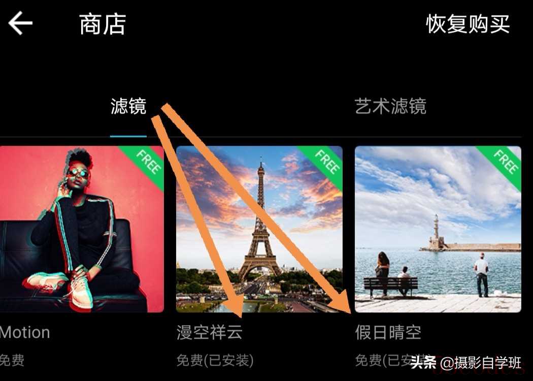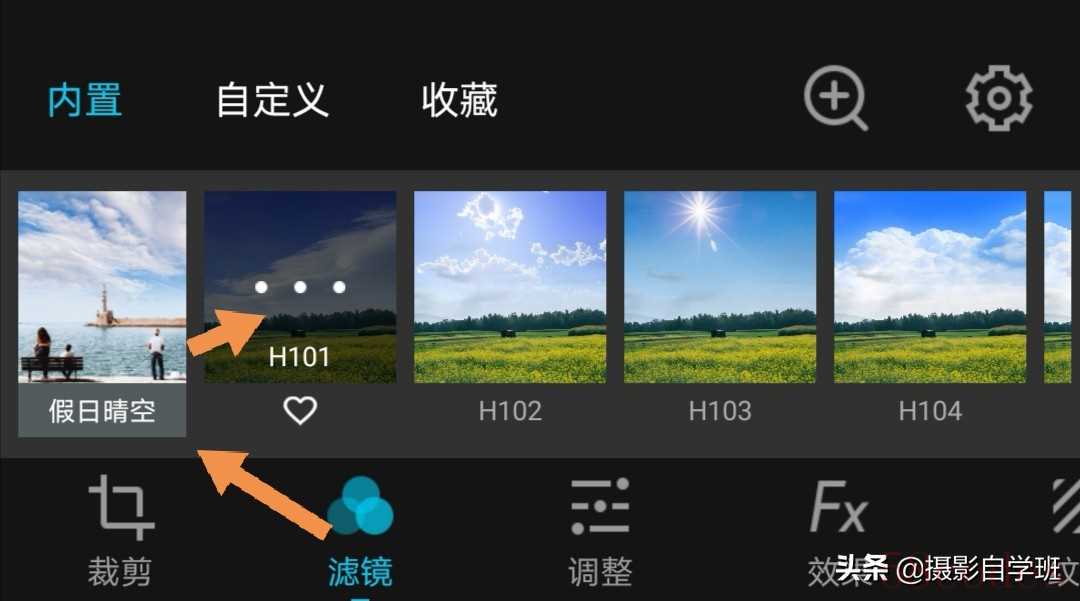 (3)在文件夹中,有很多滤镜,找到漫空祥云和假日晴空,添加进来。