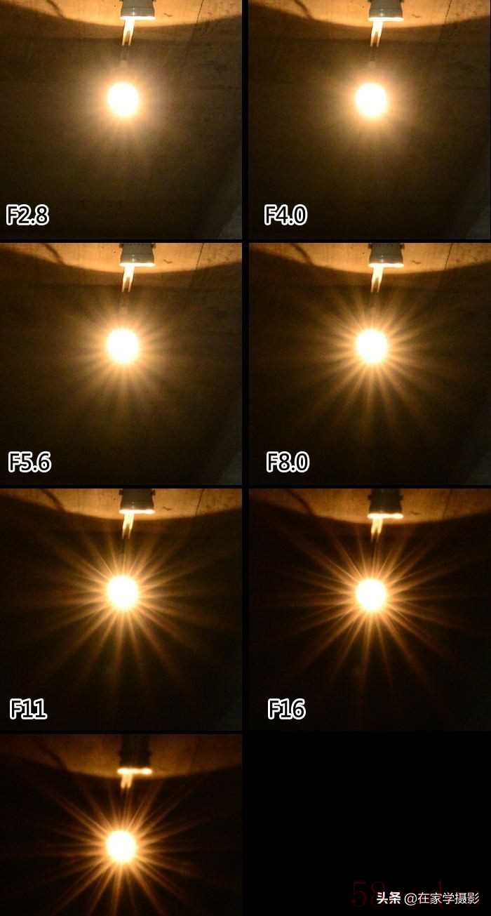 "最重要的影响因素!" 光圈值 "f" 越大(即光圈孔径越小),衍射效应越明显,星芒效果通常越清晰、锐利。
