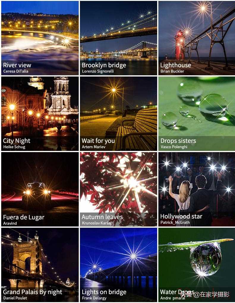 星芒的效果受到器材的影响,最大的影响还是在镜头上,因为每一款镜头都不一样,内部构造有差距,所以想追求一样的星芒效果,我认为是没有必要的,如果你想要更好的星芒效果,为什么不来试试星光镜呢?这是一个镜头外接附件,在你拍摄星芒的时候,能带来更多更好的效果,最后,无论你是拍摄夜景星芒还是日光星芒,色彩要从上面那三步寻找问题和原因。