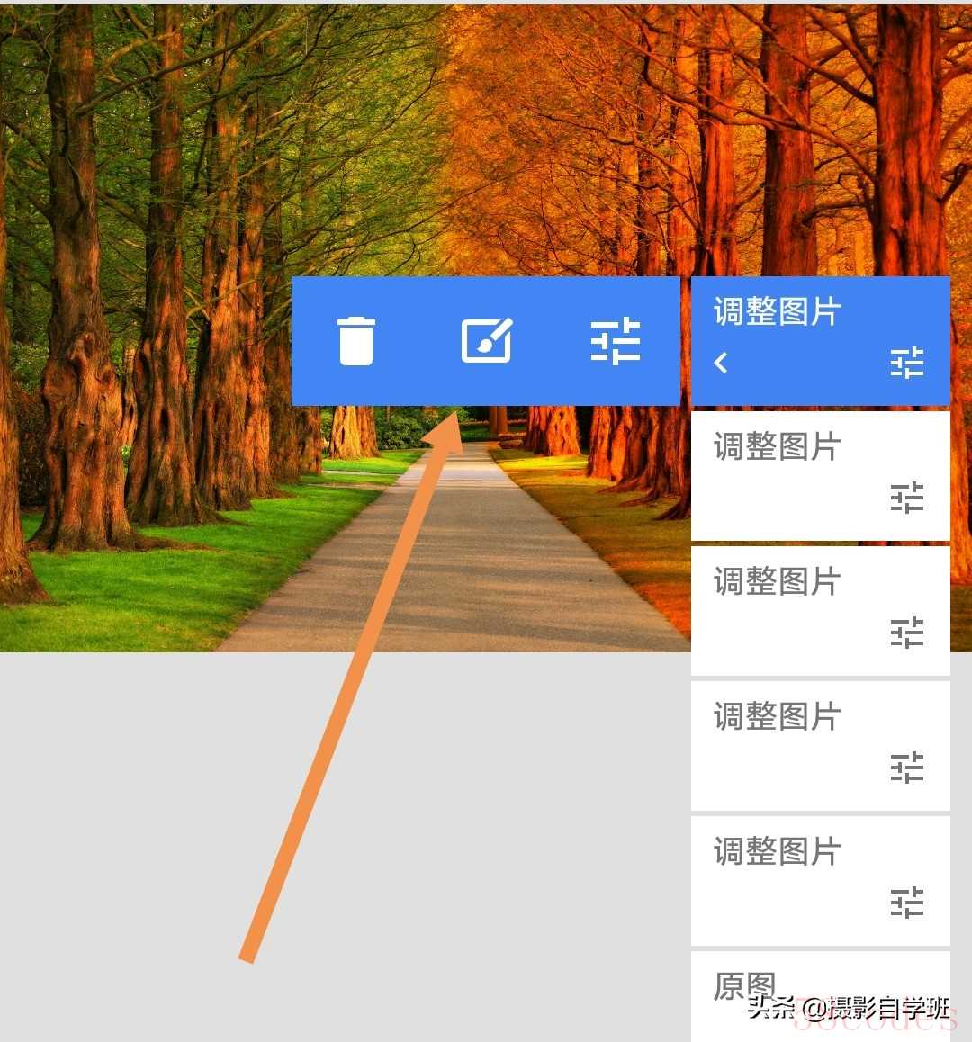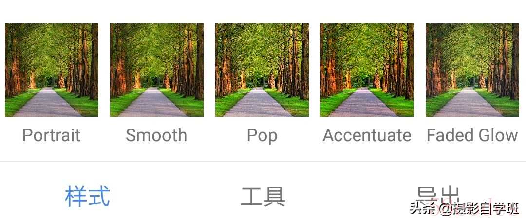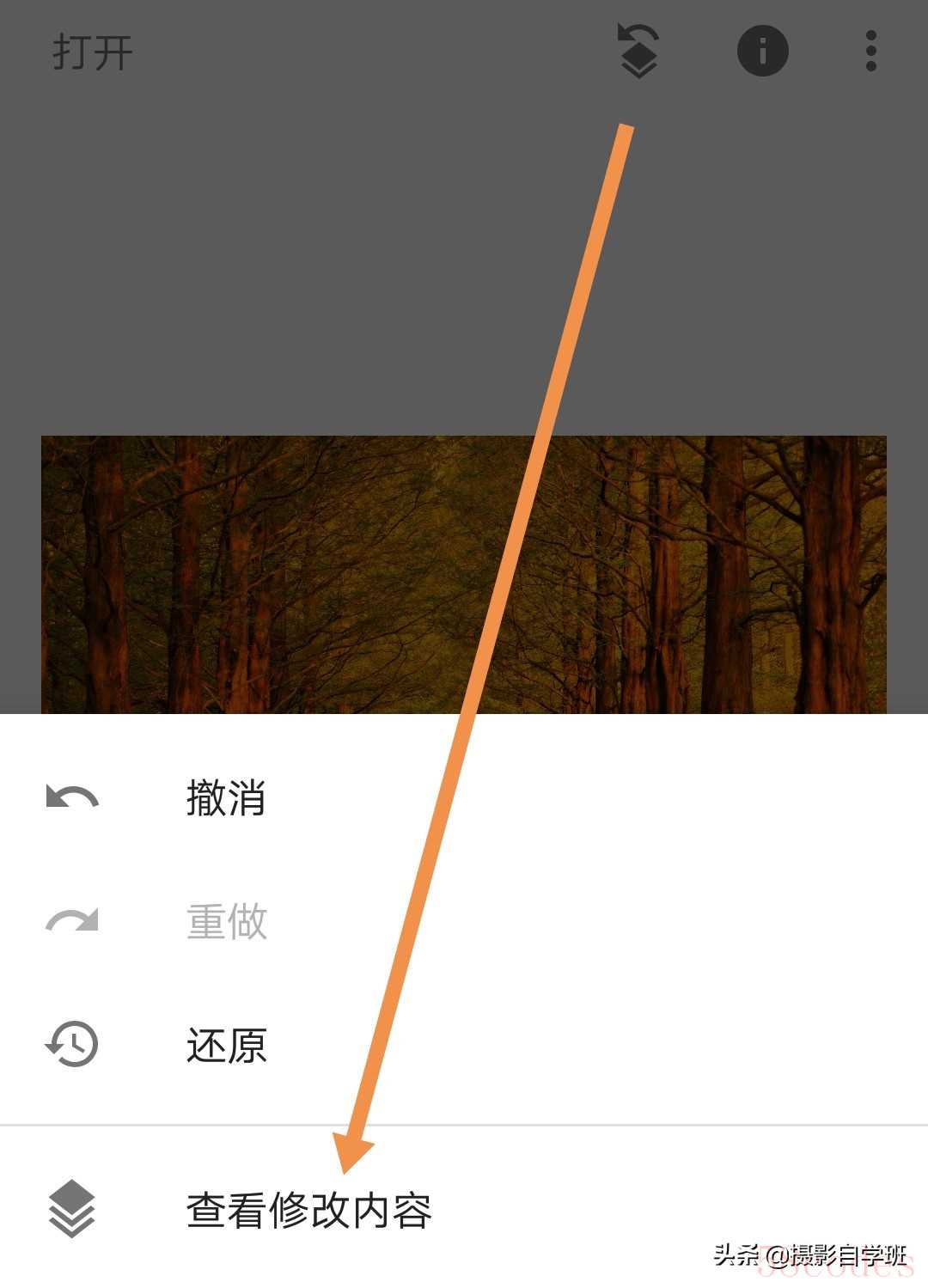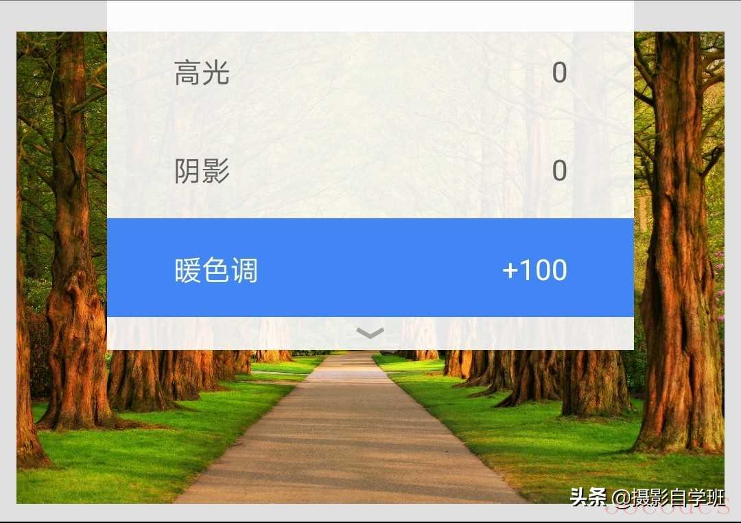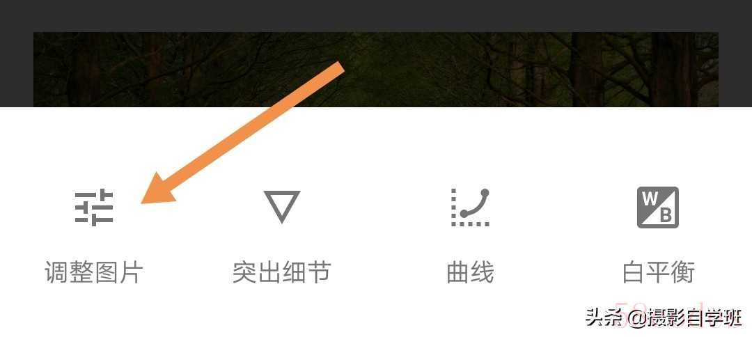 (4)用手机修图软件Snapseed打开要调色的树木照片。