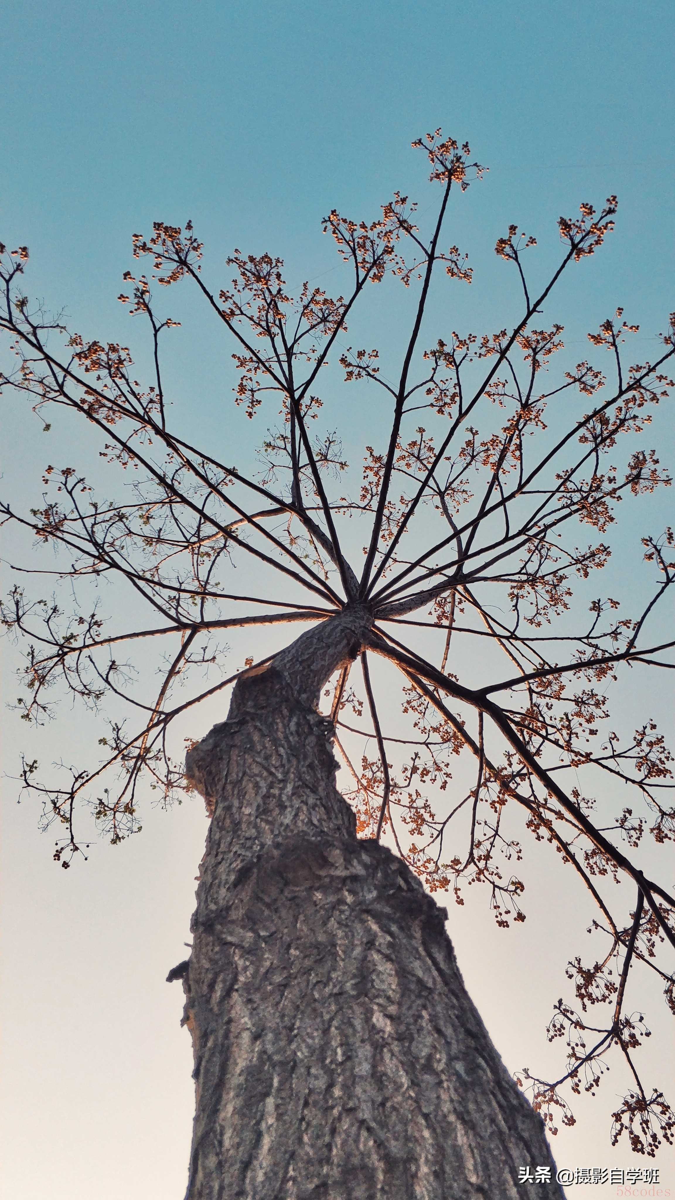 (3)尽量避免垂直向上的时候,拍到太阳,在拍摄时间上,尽量避开晴天的正午,此时阳光过曝,树干、枝叶、枝条都容易没有细节。
