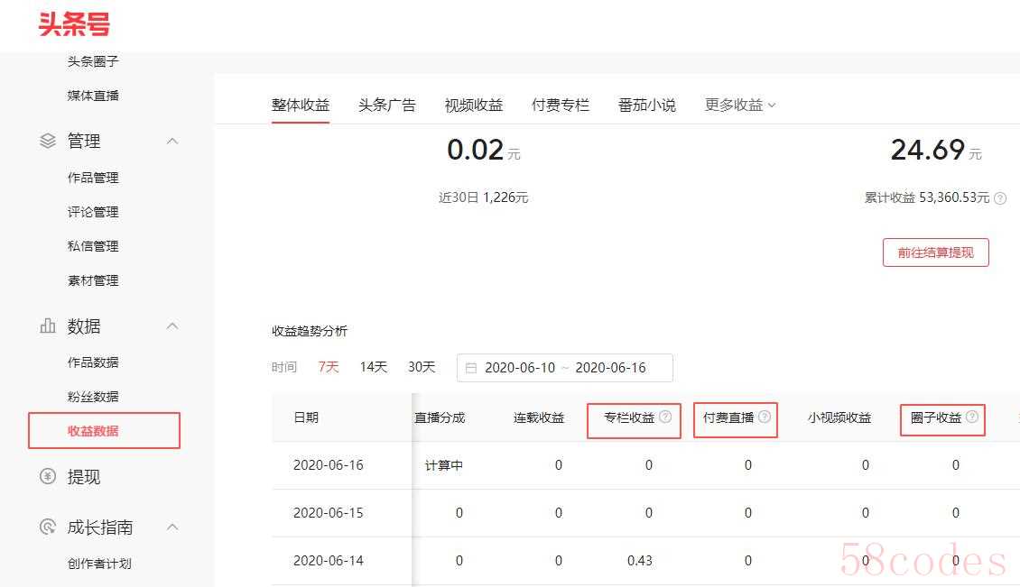 - 注:付费专栏、付费圈子、付费直播收益将与号广告、视频收益、签约奖励等类型收益合并计税。其中,个人类型将按国家兼职劳务费标准进行扣税。