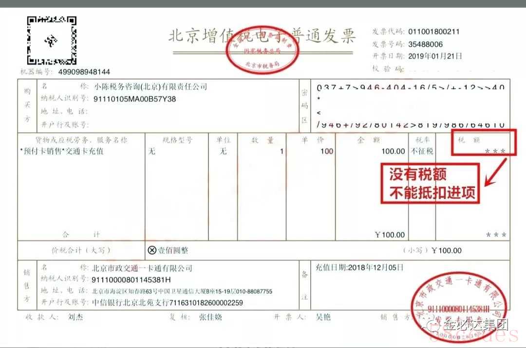 (1)如果取得是充值的“不征税”增值税电子普通发票,发票上没有税额,也就不能抵扣进项税额。