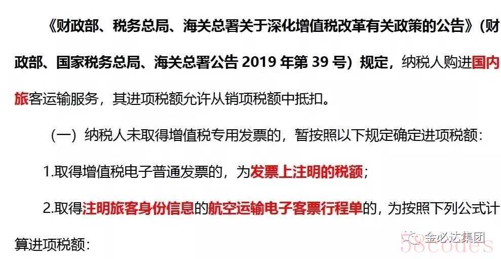 (5)旅行社或网上订的飞机票,取得电子发票,如果发票税收编码属于“旅客运输”同时税率栏是9%/3%的,可以抵扣发票上注明的税额;如果发票税收编码属于“旅游服务”、“经纪代理服务”或税率栏是6%,不属于旅客运输,不属于合规的抵扣凭证,不能抵扣进项税额。