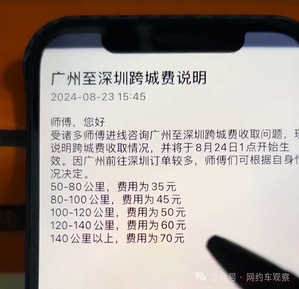 据深圳、中山车友爆料,目前滴滴已在司机端发出消息,自2024年10月18日起,发从深圳始发至中山,中山始发至深圳且里程超过25公里的快车、专车、豪华车跨城订单,每单将按照不同标准收取跨城费。快车每单60元、专车每单70元、豪华车每单80元。