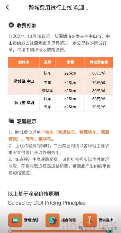 "减轻负担:" 对于司机来说,最大的潜在利好是"减少了因跨城订单而产生的额外沟通成本和潜在收入损失"。以前司机可能因为价格不明确或怕乘客不认可而不愿意接跨城单,或者即使接了也亏本。现在明码标价,乘客有预期,司机接单的意愿可能会提高,即使有跨城费,也是在事先告知的情况下进行交易,相对公平。