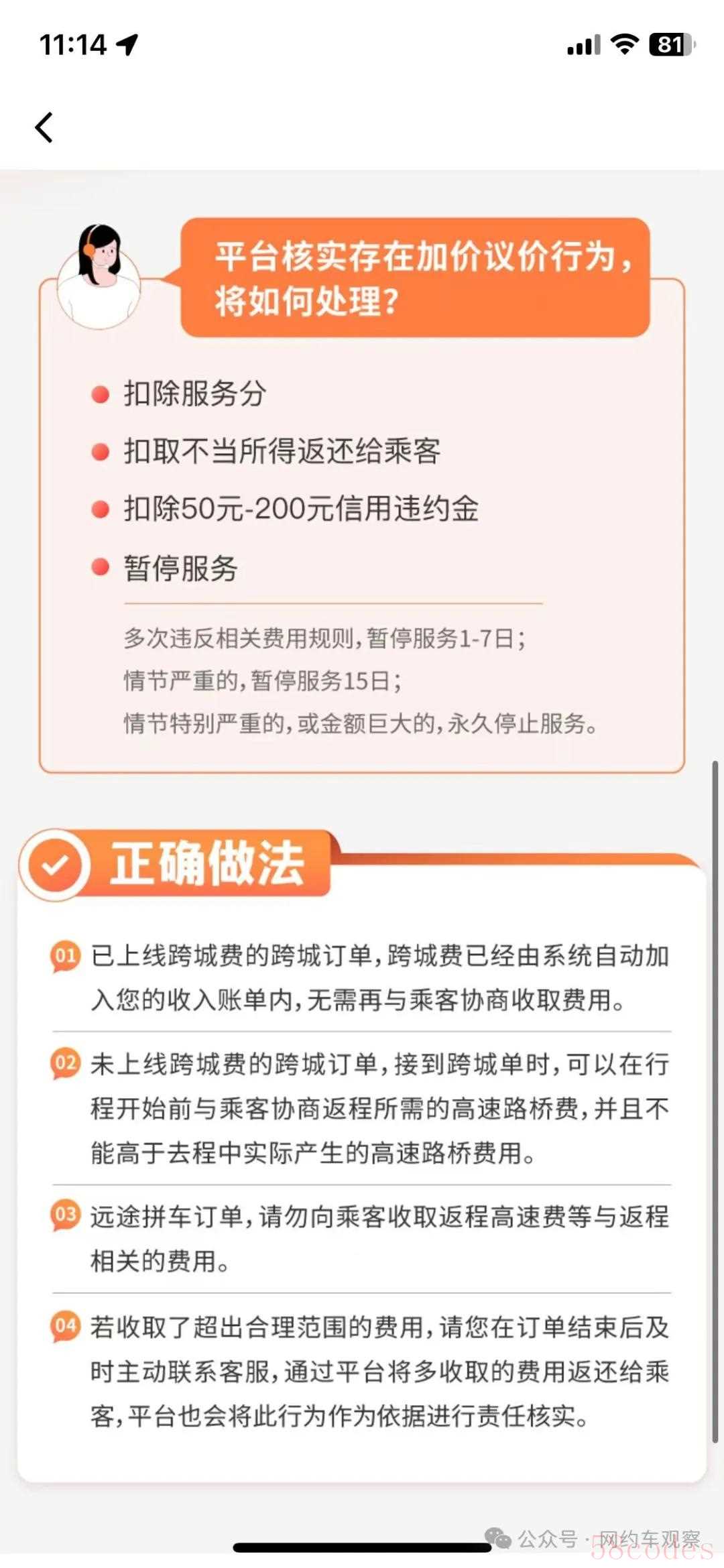 而对于没有上线跨城费的城市,司机依然可以在行程开始与乘客协商返程费,乘客同意之后也是可以添加的。但是需要注意的是,添加的费用不得高于实际产生的高速费用,否则容易被判责。