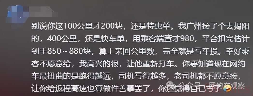 有师傅表示,按照现在的运价,现在跨城的单如果没有返程费,司机大概率要亏本,而且跑得越远、亏得越多。