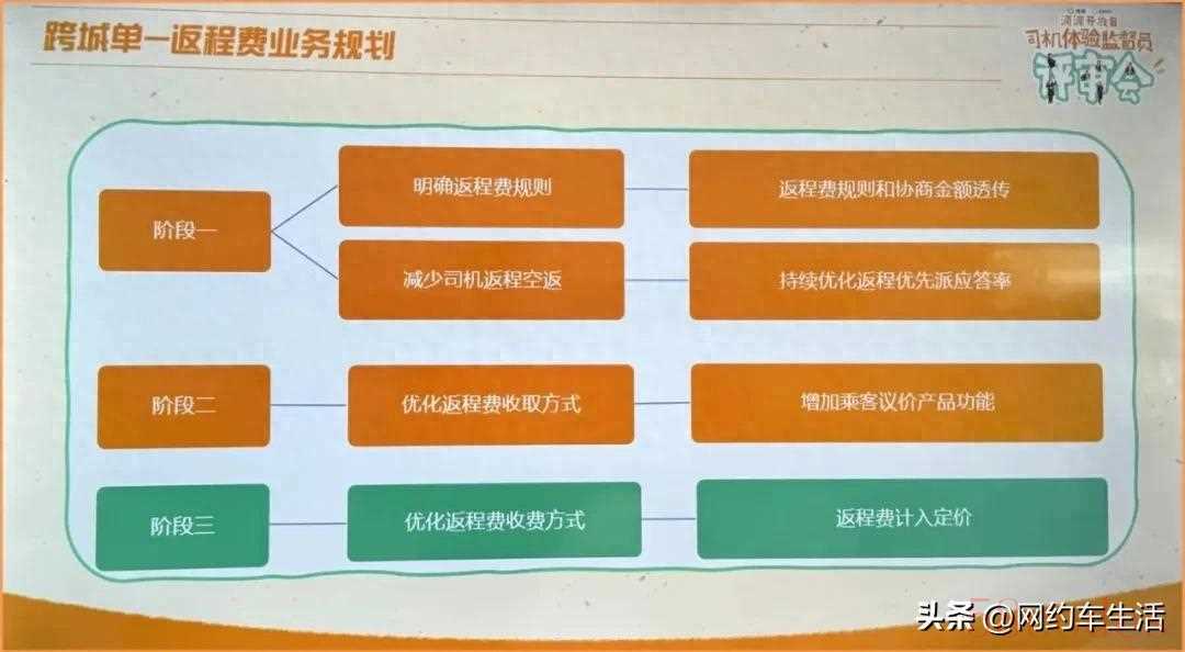 谁也不知道,第二阶段什么时候实施,更别提第三阶段了。然而,这次滴滴开放日上,滴滴将跨城订单返程费纳入司机反馈问题改进汇报中。