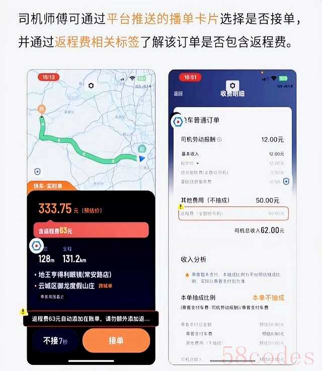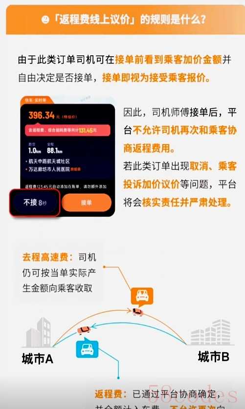 第一,返程费上限锁死,最多不超过订单金额的50%。