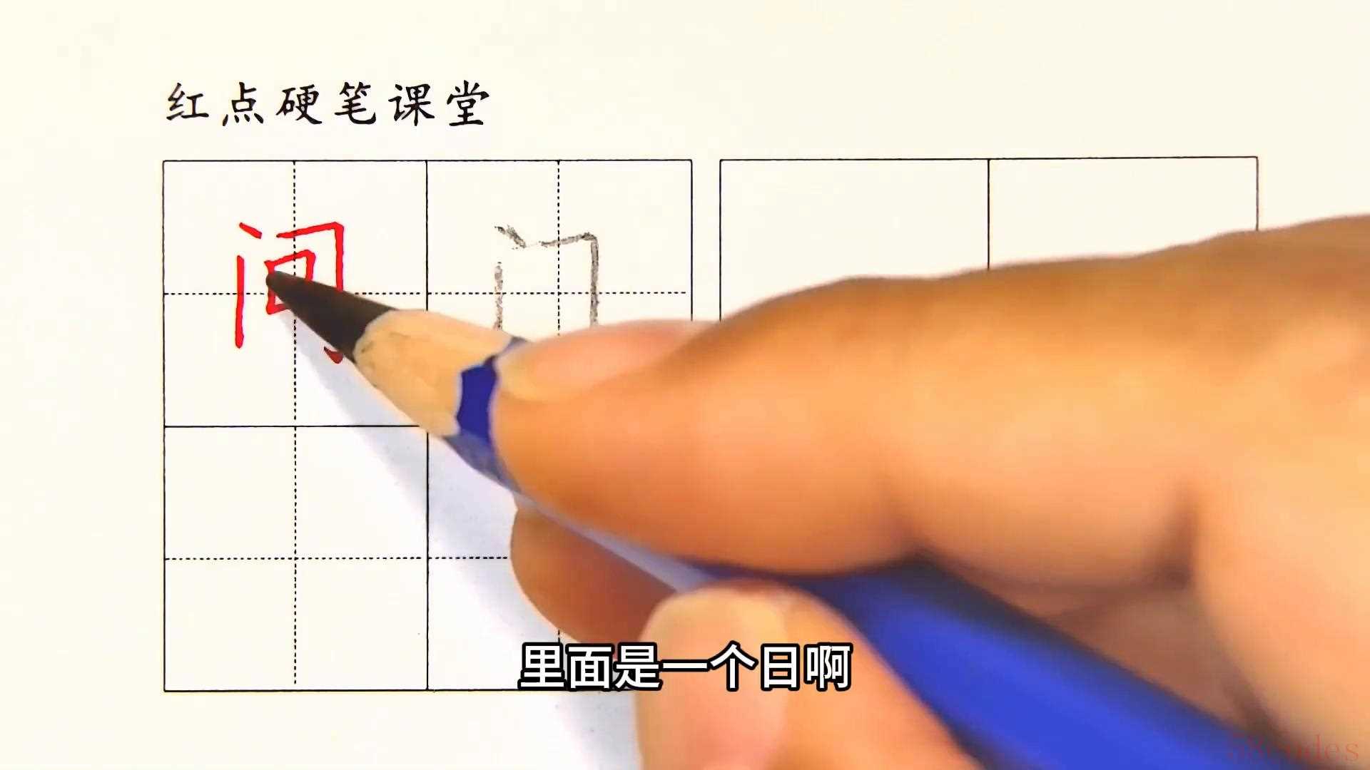 ·里面是一个日,这个日原则是靠上,往上靠不要往下,短竖靠上一点,横折短小,然后里边还有一个小短横,右侧不接,像点一样,最后封口,竖挡住横。