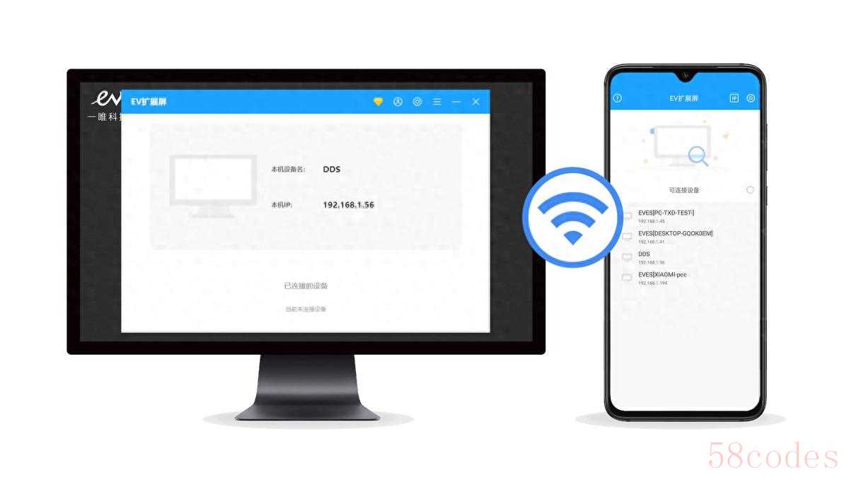 1、手机和电脑需要安装EV扩展屏,并且需要连接同一个WiFi网络。