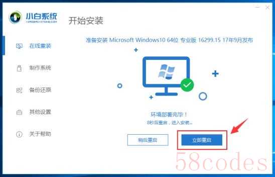 7、安装系统win10完成后,10秒自动重启电脑,或者手动点击 立即重启,下图所示: