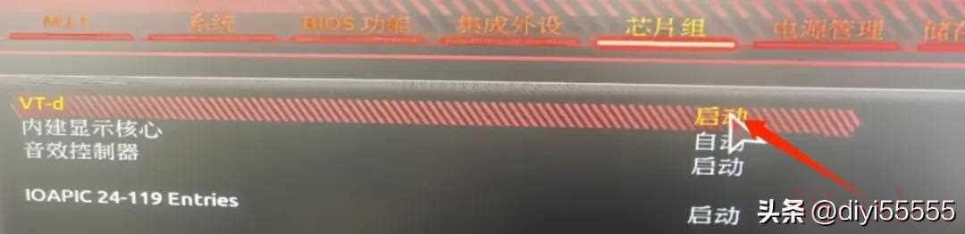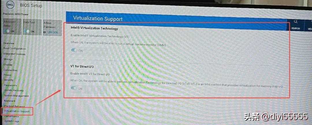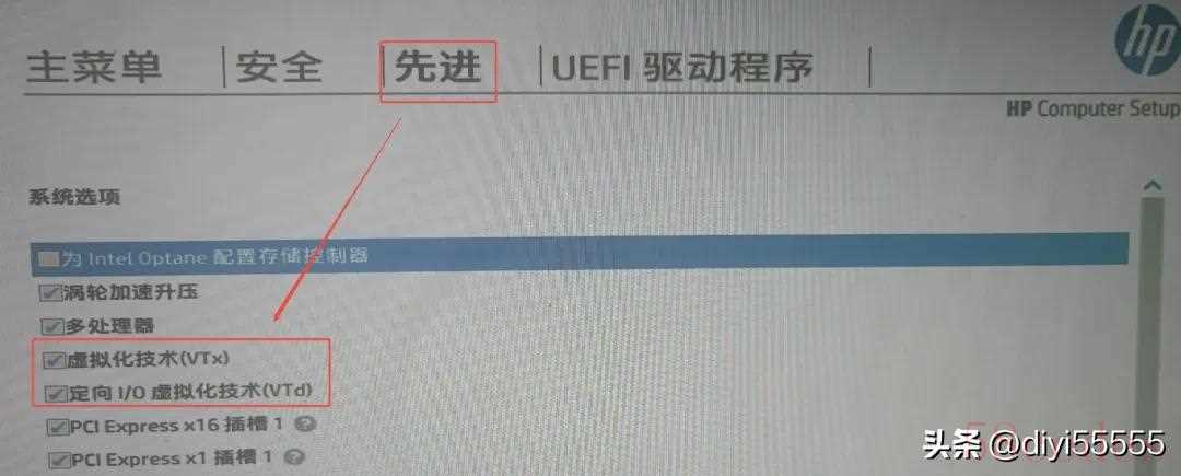 步骤3:选择“高级菜单”,找到“Virtualization 技术”和“VT-d”开关并打开。▼ Intel机器 ▼