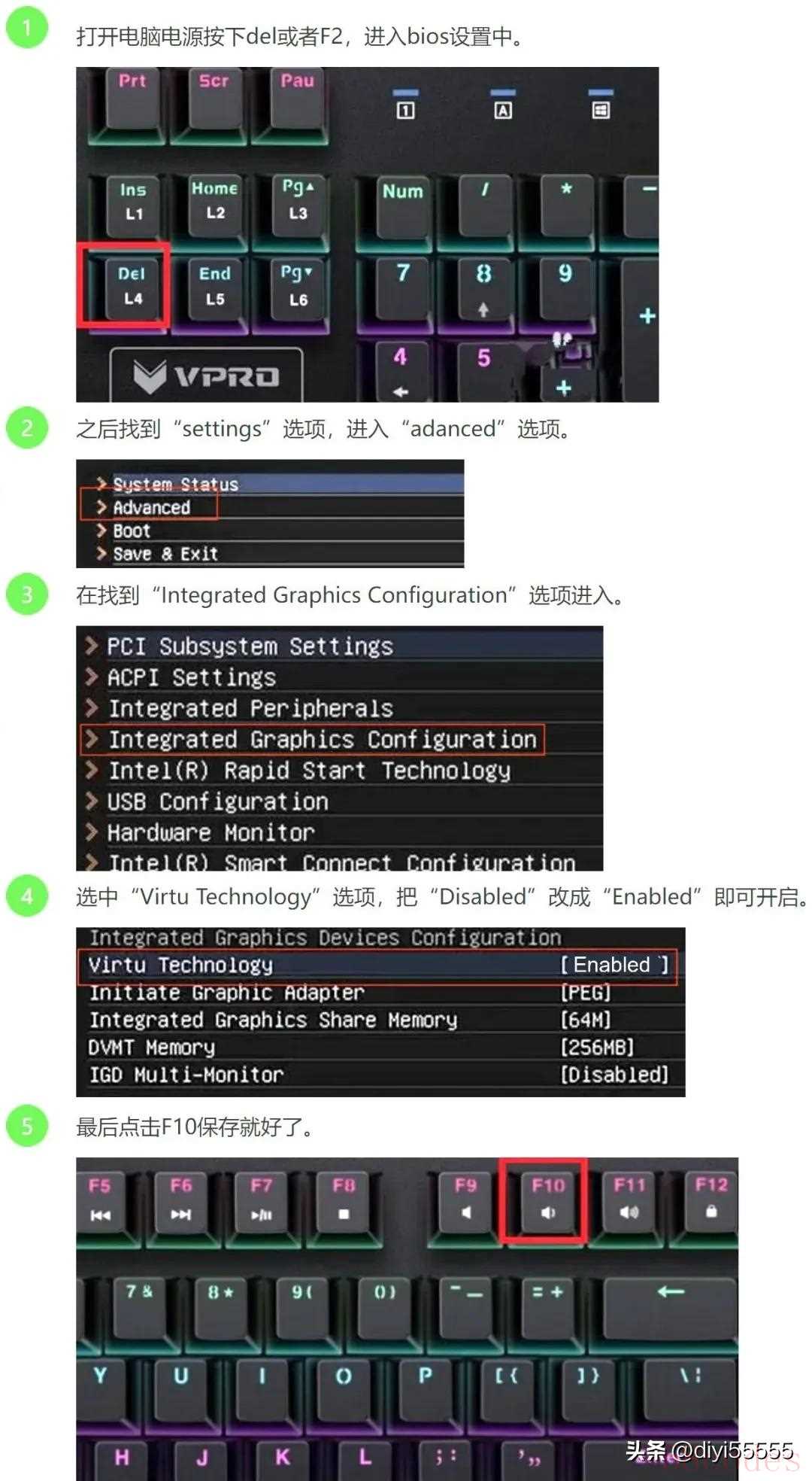 开启内容每个平台的CPU虚拟化都有两种,都需要您在BIOS里打开,分别是:Intel平台VT-XVirtualization Technology Extensions,虚拟化技术扩展VT-D:Virtualization Technology for Directed I/O,直接I/O虚拟化技术