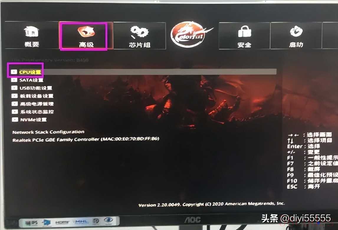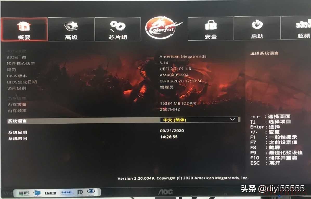 七彩虹主板开机界面连续短按“Delete”进入bios页面▼ Intel ▼