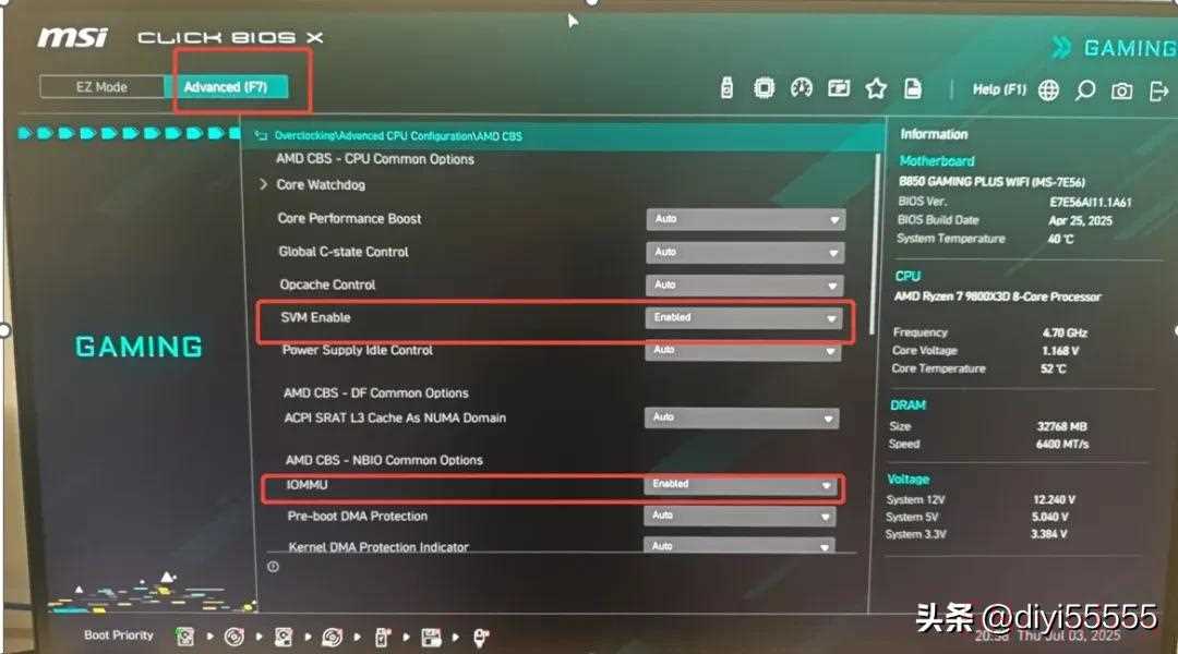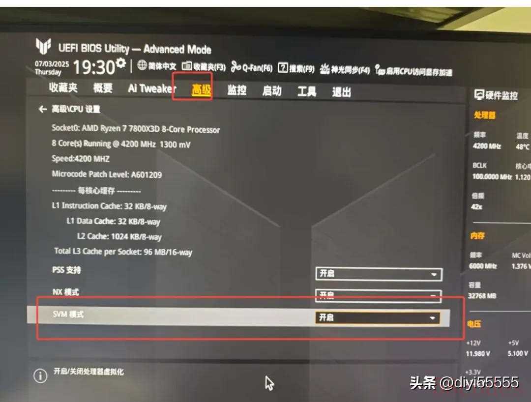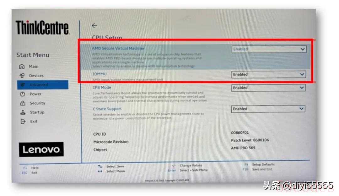 ▼ AMD机器▼找到AMD Secure Virtual Machine和IOMMU