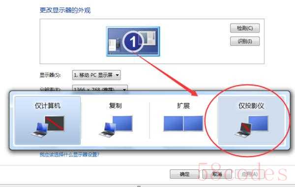 4,选择“仅投影仪”按钮,如下图中内容所表示。
