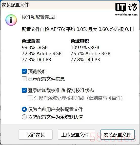 IT之家通过 DisplayCAL 以及爱色丽校色仪实测,MEOW R16 Ultra 屏幕的 sRGB 色域容为 109.9%,sRGB 色域覆盖为 99.3%,轻松应对电竞游戏、日常娱乐需求。